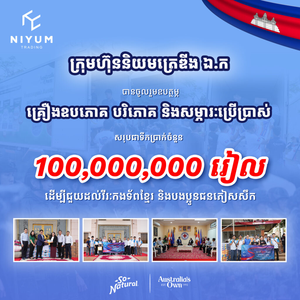 ក្រុមហ៊ុនកូនខ្មែរនាំចូលទឹកដោះគោស្រស់ សូណេឆើរ៉ាល់ (So Natural) ពីប្រទេសអូស្រ្តាលី ផ្តល់ជំនួយរហូតដល់ ១០០,០០០,០០០រៀល ជូនជនដល់វីរៈកងទ័ព និងប្រជាជនភៀសសឹក
