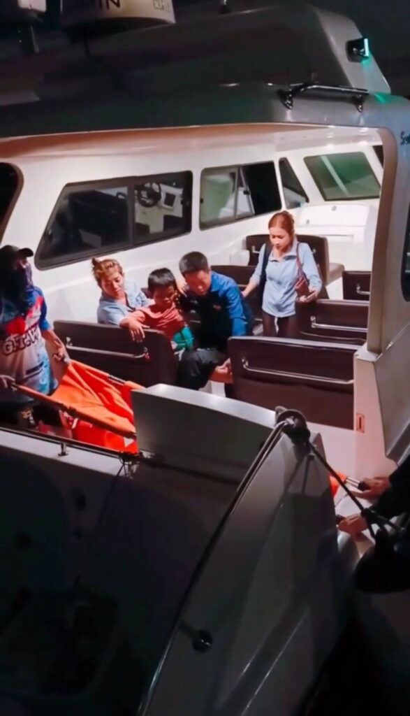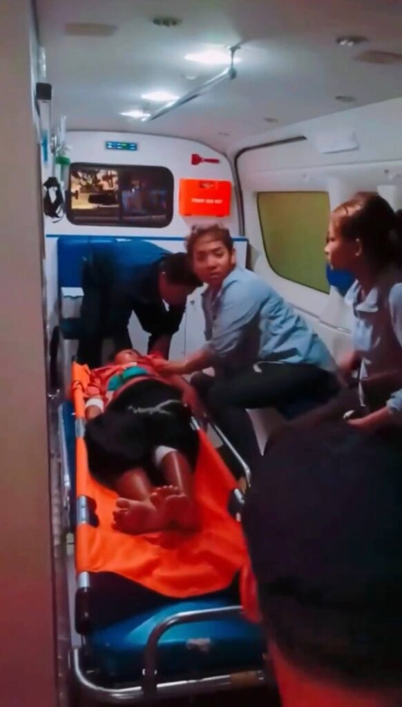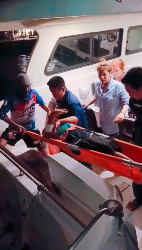បុរសខាងលើ ត្រូវបានក្រុមការងារ របស់អ្នកឧកញ៉ា បញ្ជូនតាមអូប័រមកកាន់កំពង់ផែទេសចរណ៍ ក្រុងព្រះសីហនុដោយសុវត្ថិភាព នឹងបន្តដឹកតាមរថយន្តសង្គ្រោះក្រមហ៊ុន GTVC របស់អ្នកឧកញ៉ា យកទៅសង្គ្រោះបន្ទាន់នៅមន្ទីរពេទ្យ ក្នុងខេត្តព្រះសីហនុ៕