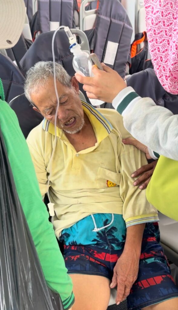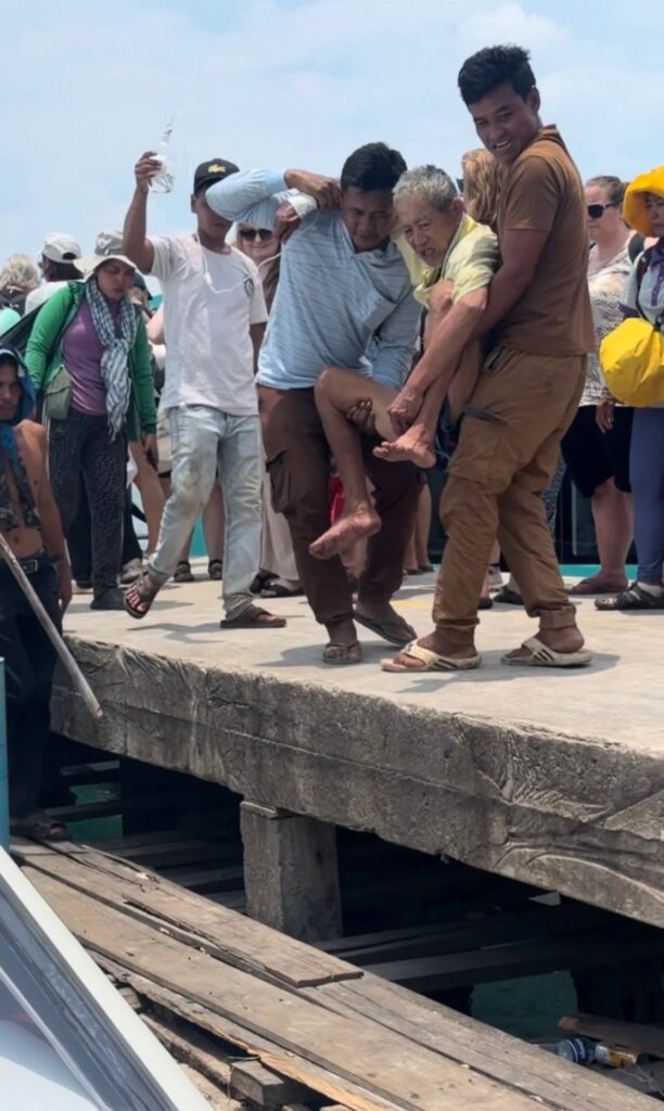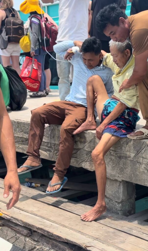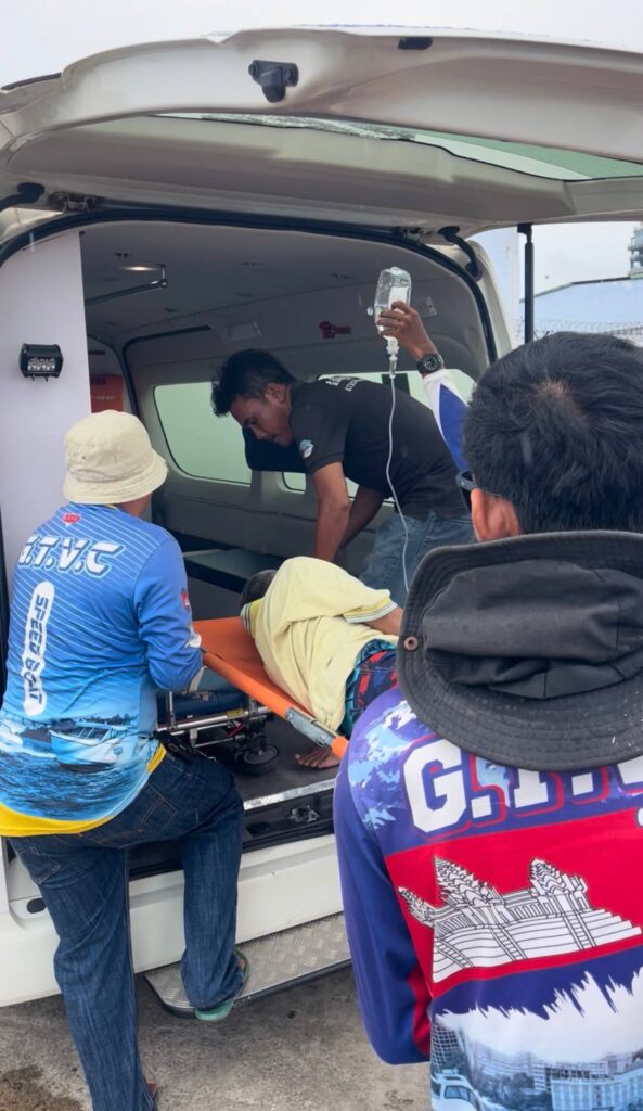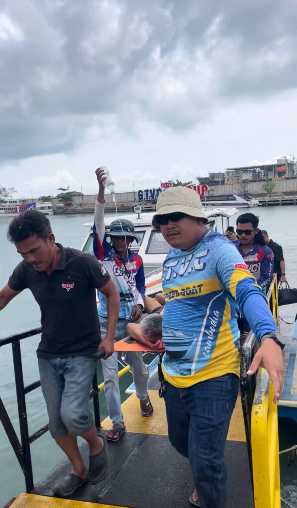 បុរសខាងលើ ត្រូវបានក្រុមការងារ របស់អ្នកឧកញ៉ា បញ្ជូនតាមអូប័រ GTVC មកកាន់កំពង់ផែទេសចរណ៍ ក្រុងព្រះសីហនុ ដោយសុវត្ថិភាព នឹងបន្តដឹកតាមរថយន្តសង្គ្រោះក្រុមហ៊ុន GTVC របស់អ្នកឧកញ៉ា យកទៅសង្គ្រោះបន្តនៅមន្ទីរពេទ្យ ក្នុងខេត្តព្រះសីហនុ៕