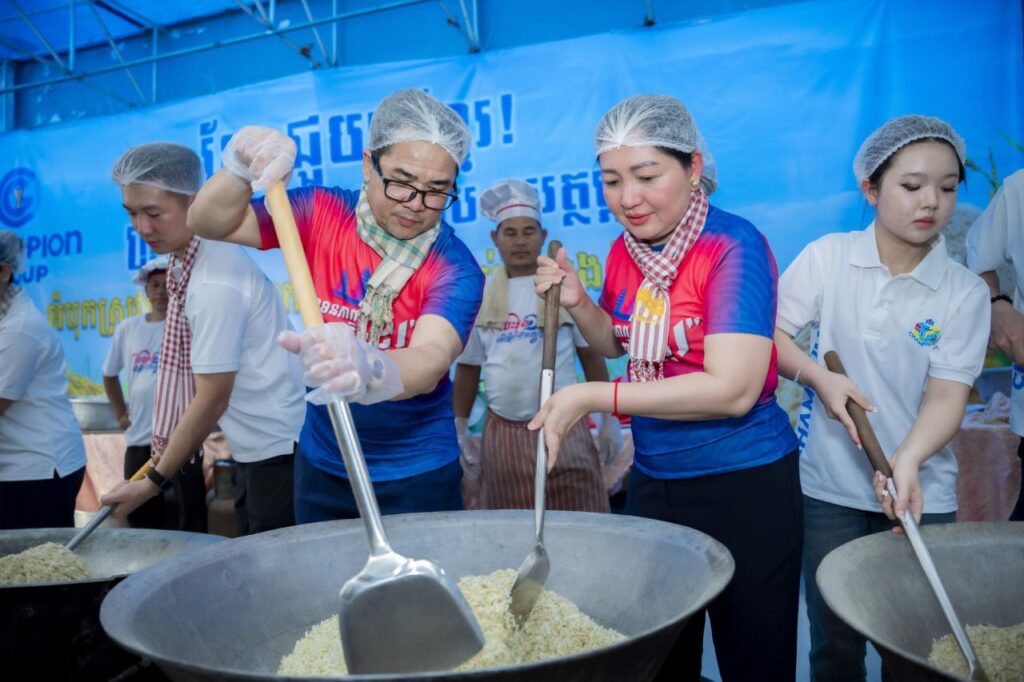 លោកស្រីអ្នកឧកញ៉ាសូមបញ្ជាក់ជូនផងដែរថា ក្រៅពីអំបុក ក្រុមហ៊ុនឆេមពានគ្រុប ក៏បាននាំយកអង្ករចំនួន១៥តោន និងភេសជ្ជៈហ្រ្គីតចំនួន ១៥០០កេស ទៅប្រគល់ជូនដល់យុវជនថ្នាក់កណ្តាលផងដែរ កាលពី ព្រឹកថ្ងៃទី ១៤ ខែធ្នូ ឆ្នាំ២០២៥ ។ ក្រុមហ៊ុន ឆេមពានគ្រុប របស់លោកជំទាវ គឺជាក្រុមហ៊ុនខ្មែរ ១០០% ក្នុងនោះផលិតផល រួមមាន ភេសជ្ជៈ ប៉ូវកម្លាំង ហ្រ្គីត ស្រាបៀរហ្រ្គីត ភេសជ្ជ:ប៉ូវកម្លាំង ឆេមពានអាយស៍ ឆេមពានហ្រ្គីន និង ថប់អាប់ ខ្មែរគាំទ្រផលិតផលខ្មែរ។