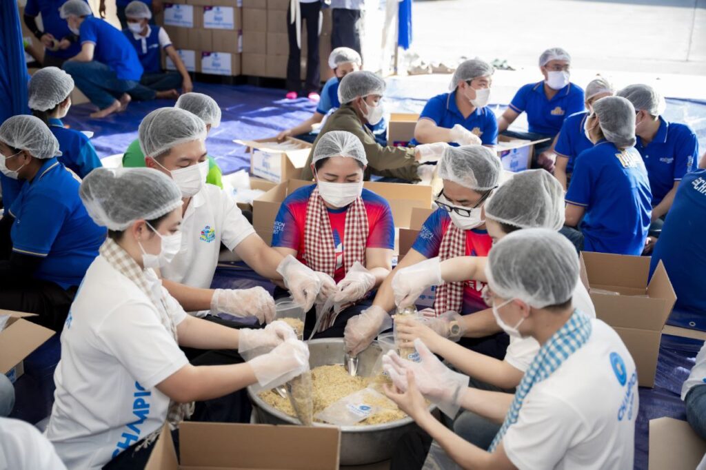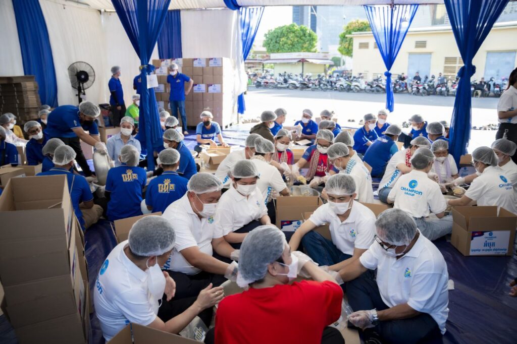 ភ្នំពេញ: ដើម្បីតបស្នងនូវការលះបង់របស់វីរកងទ័ពជួរមុខក៏អង់អាចក្លាហាន និងទុក្ខវេទនា របស់ក្រុមគ្រួសារ បងប្អូនភៀសសឹក ក្រុមហ៊ុនឆេមពានគ្រុប បានឧបត្ថម អំបុក១៥តោន អង្ករ១៥តោន និងភេសជ្ជៈហ្រ្គីត ១៥០០កេស។ ការឧបត្ថម្ភនេះ គឺជាការផ្តល់កំលាំងចិត្តដល់វីរកងទ័ព នៅសមរភូមិមុខ ដ៏អង់អាចក្លាហាន លះបង់ឈាមស្រស់សាច់ស្រស់ កំពុងឈរជើងយ៉ាងមោះមុតការពារ ទឹកដី និងប្រជាជនយើង។