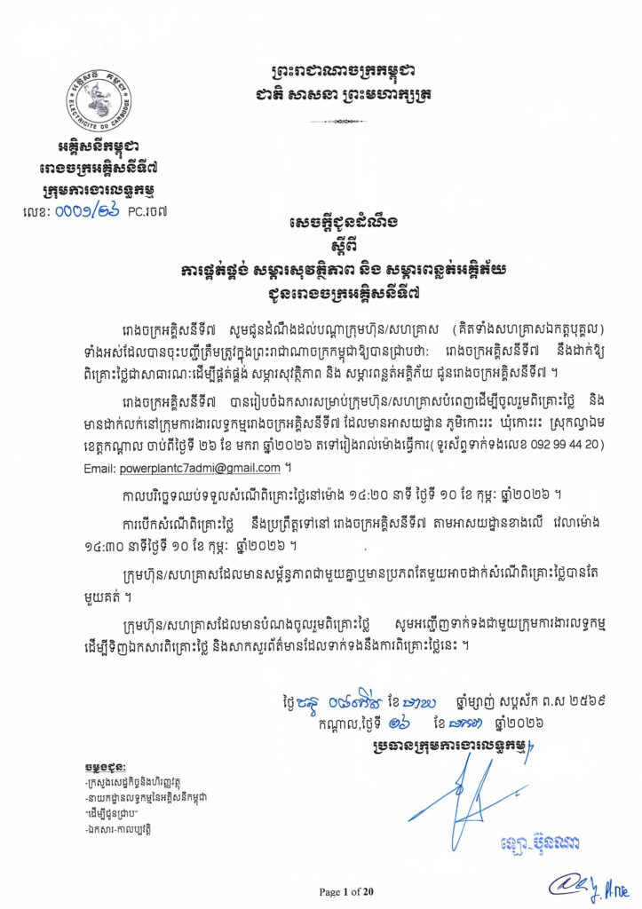 សេចក្ដីជូនដំណឹង ស្ដីពីការផ្គត់ផ្គង់ សម្ភារសុវត្ថិភាព និងសម្ភារពន្លត់អគ្គិភ័យ ជូនរោងចក្រអគ្គិសនីទី៧ By: KD102 Date: January 26, 2026 Previous articleផលិតកម្មបារមី និង ភ្លើងគប់ នឹងចាក់ផ្សាយជាផ្លូវការនៃកម្មវិធី The NEXT LEVEL: RAPSTAR ដែលជាកម្មវិធីទូរទស្សន៍បង្កើតឡើងដោយខ្មែរសុទ្ធសាធដំបូងបង្អស់ ស្វែងរកតារារ៉េបដ៏មានសមត្ថភាពក្នុងប្រទេសកម្ពុជា Share post: FacebookTwitterPinterestWhatsApp Popular ផលិតកម្មបារមី និង ភ្លើងគប់ នឹងចាក់ផ្សាយជាផ្លូវការនៃកម្មវិធី The NEXT LEVEL: RAPSTAR ដែលជាកម្មវិធីទូរទស្សន៍បង្កើតឡើងដោយខ្មែរសុទ្ធសាធដំបូងបង្អស់ ស្វែងរកតារារ៉េបដ៏មានសមត្ថភាពក្នុងប្រទេសកម្ពុជា Startup Grind Cambodia៖ Founder Connect – នវានុវត្តន៍ កសិកម្ម និងចំណីអាហារ នៅកម្ពុជា Genki Sushi បើកសាខាថ្មីនៅផ្សារទំនើបអ៊ីអន ម៉លទី ១ និងនាំអាហារស៊ូស៊ី Kaiten ដ៏ល្បី របស់ជប៉ុនសម្រាប់ ប្រជាជនកម្ពុជា ក្រុមហ៊ុនអាកាសចរណ៍ Vietjet ជាប់ឈ្មោះម្តងទៀតក្នុងចំណោមជាក្រុមហ៊ុនអាកាសចរណ៍ ដែលមានសុវត្ថិភាពបំផុតលើពិភពលោកសម្រាប់ឆ្នាំ ២០២៦ មួយថ្ងៃតែប៉ុណ្ណោះ៖ Vietjet បញ្ចុះតម្លៃសំបុត្រ 30% លើតម្លៃសំបុត្រយន្តហោះ Deluxe More like thisRelated ផលិតកម្មបារមី និង ភ្លើងគប់ នឹងចាក់ផ្សាយជាផ្លូវការនៃកម្មវិធី The NEXT LEVEL: RAPSTAR ដែលជាកម្មវិធីទូរទស្សន៍បង្កើតឡើងដោយខ្មែរសុទ្ធសាធដំបូងបង្អស់ ស្វែងរកតារារ៉េបដ៏មានសមត្ថភាពក្នុងប្រទេសកម្ពុជា pheaktra1168@gmail.com - January 23, 2026 កម្មវិធីនឹងចាប់ផ្តើមផ្សាយនៅថ្ងៃសុក្រ ទី៣០ ខែមករា ឆ្នាំ២០២៦ រៀងរាល់ថ្ងៃសុក្រ វេលាម៉ោង ៨:០០យប់ លើកញ្ចក់ទូរទស្សន៍ បាយ័ន... Startup Grind Cambodia៖ Founder Connect – នវានុវត្តន៍ កសិកម្ម និងចំណីអាហារ នៅកម្ពុជា pheaktra1168@gmail.com - January 23, 2026 ភ្នំពេញ ៖ Startup Grind Cambodia មានសេចក្តីសោមនស្សរីករាយក្នុងការរៀបចំកម្មវិធី Founder Connect នាពេលខាងមុខនេះក្រោមប្រធានបទ... Genki Sushi បើកសាខាថ្មីនៅផ្សារទំនើបអ៊ីអន ម៉លទី ១ និងនាំអាហារស៊ូស៊ី Kaiten ដ៏ល្បី របស់ជប៉ុនសម្រាប់ ប្រជាជនកម្ពុជា bora.chhouk@gmail.com - January 16, 2026 ភ្នំពេញ៖ ថ្ងៃទី ១៦ ខែមករា ឆ្នាំ ២០២៦ – Genki Sushi... ក្រុមហ៊ុនអាកាសចរណ៍ Vietjet ជាប់ឈ្មោះម្តងទៀតក្នុងចំណោមជាក្រុមហ៊ុនអាកាសចរណ៍ ដែលមានសុវត្ថិភាពបំផុតលើពិភពលោកសម្រាប់ឆ្នាំ ២០២៦ bora.chhouk@gmail.com - January 15, 2026 ភ្នំពេញ៖ ថ្ងៃទី១៥ ខែមករា ឆ្នាំ២០២៦– ក្រុមហ៊ុនអាកាសចរណ៍ Vietjet ត្រូវបានទទួលស្គាល់ម្តងទៀតដោយ AirlineRatings ដែលជាគេហទំព័រវាយតម្លៃសុវត្ថិភាព...
